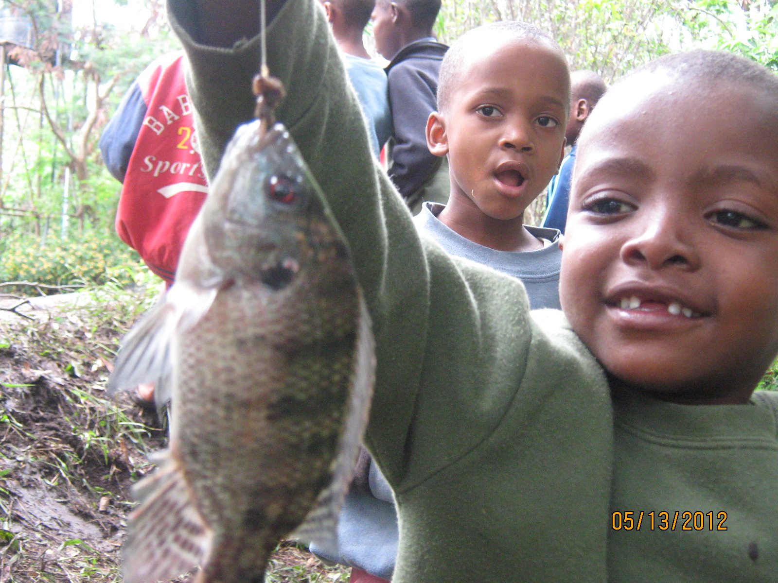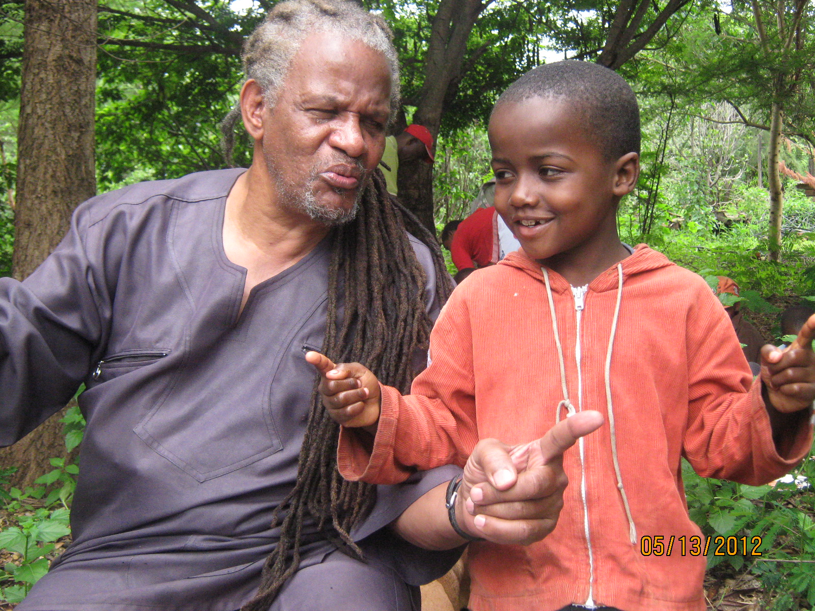 Babu teaching Joshua the art of telling a good fish story.